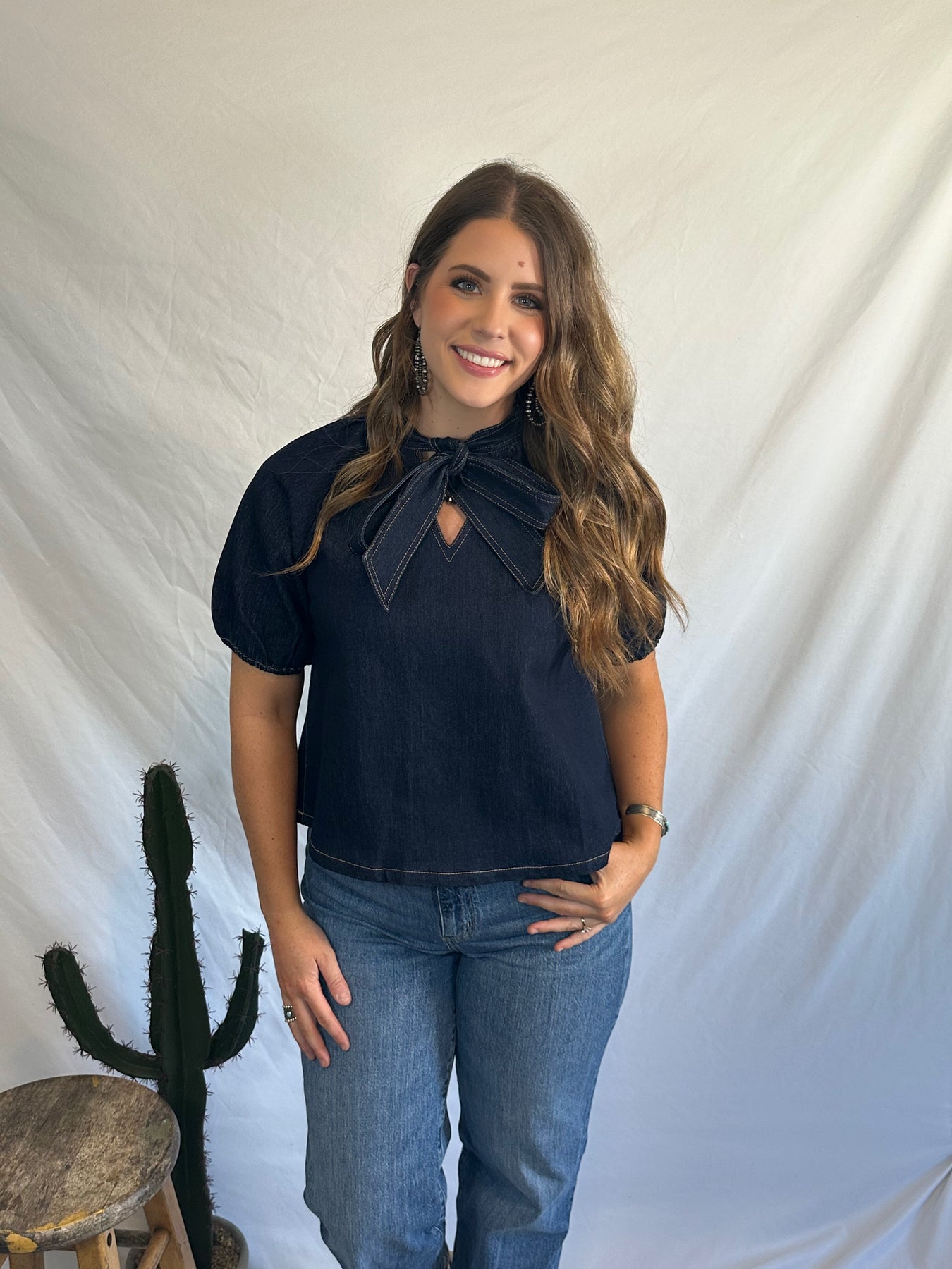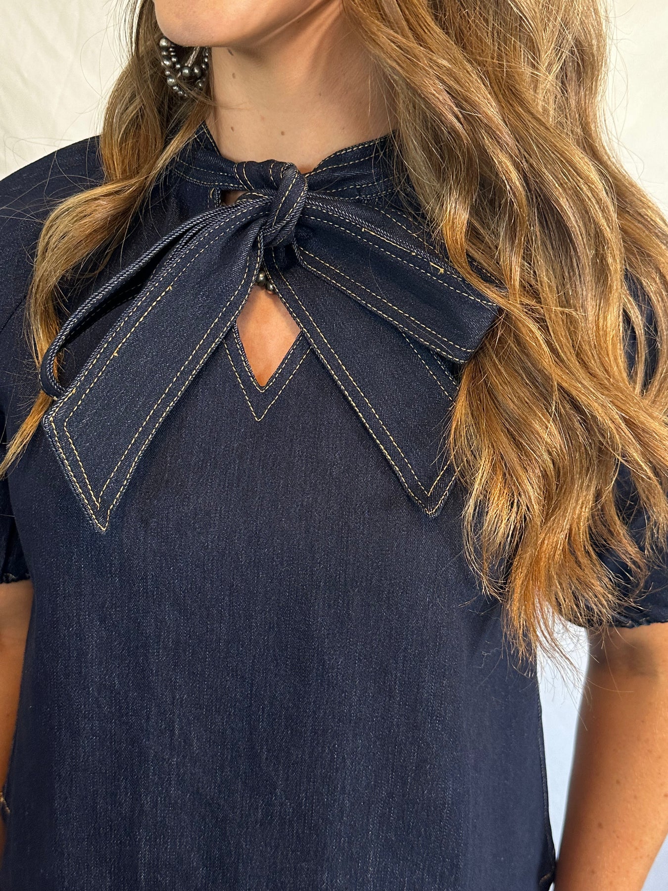 Bow denim blouse